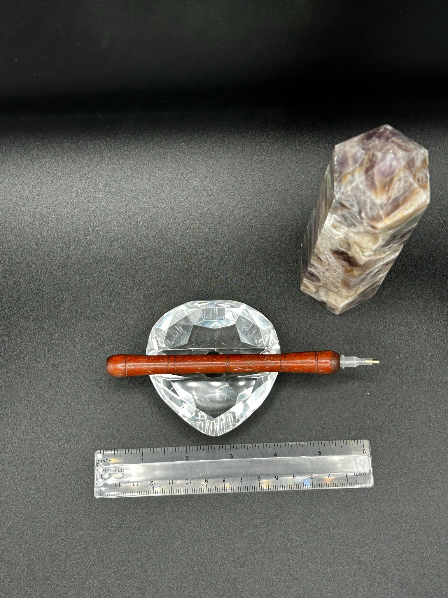 No two blanks are exactly alike. Length is approx. 5 inches without tips. Comes with Velvet Pouch, 1 standard single placer tip, 1 plastic single placer curved tip, 1 plastic row straightener, and 1 #4 thin multi-placer.