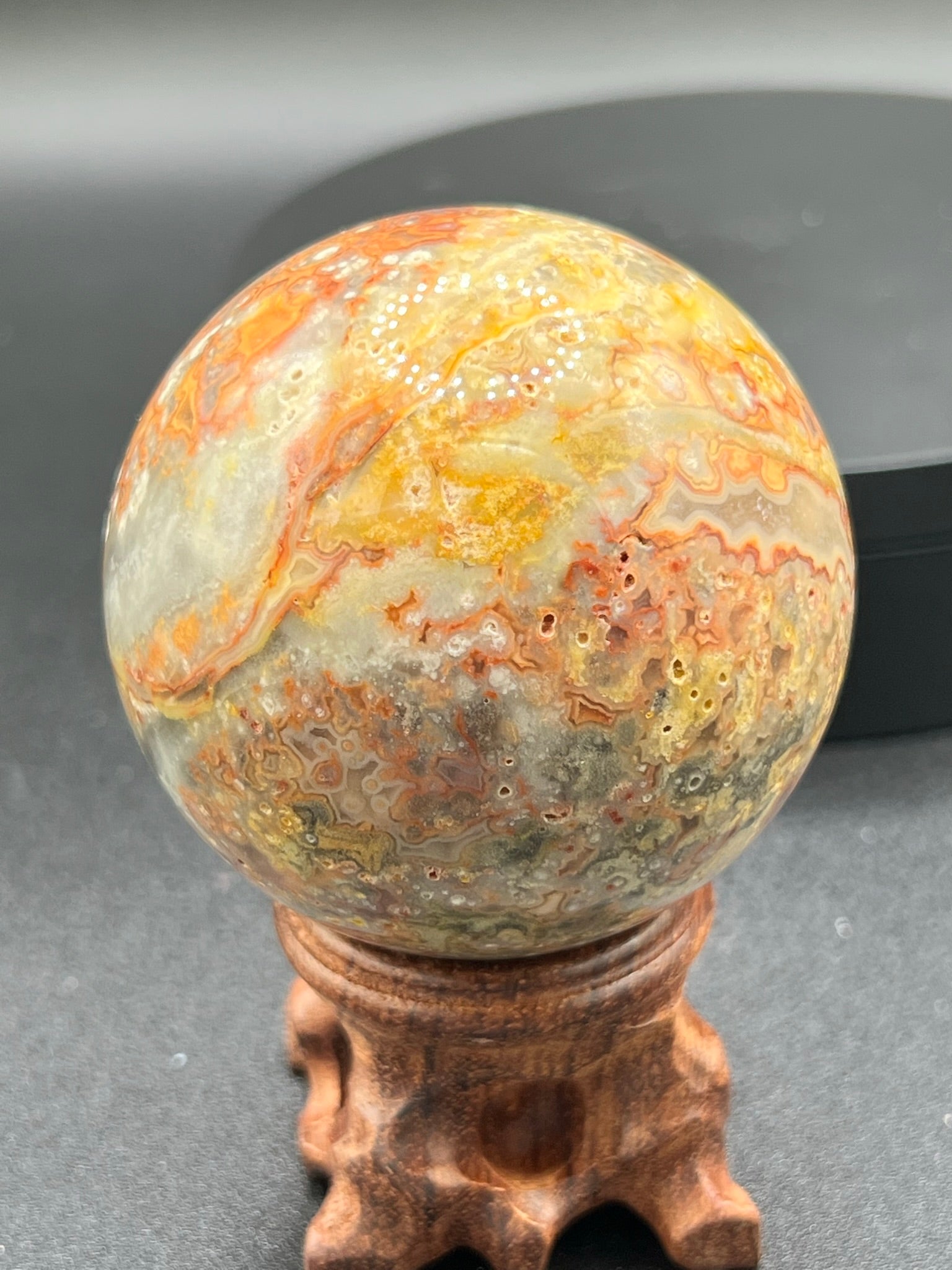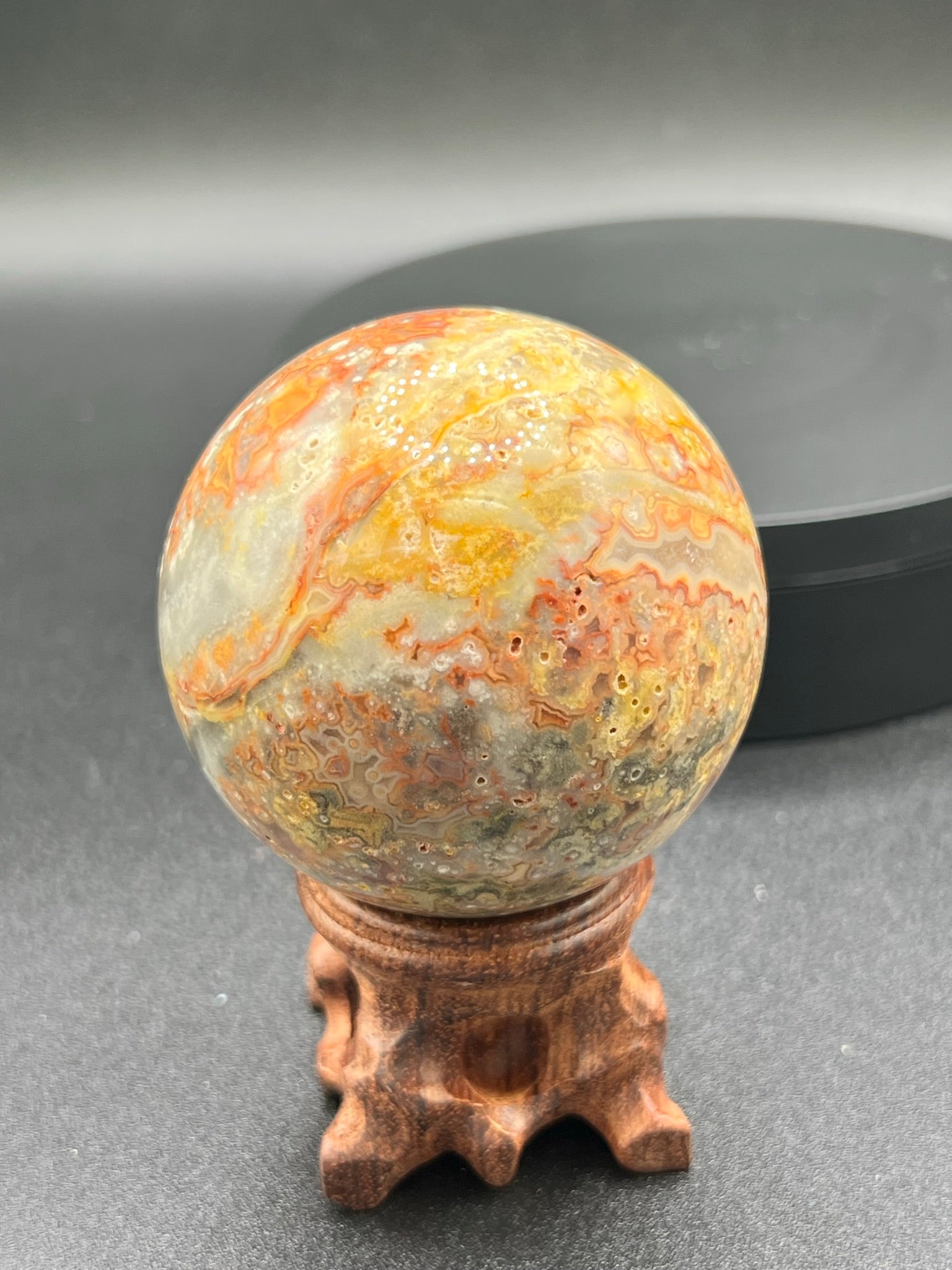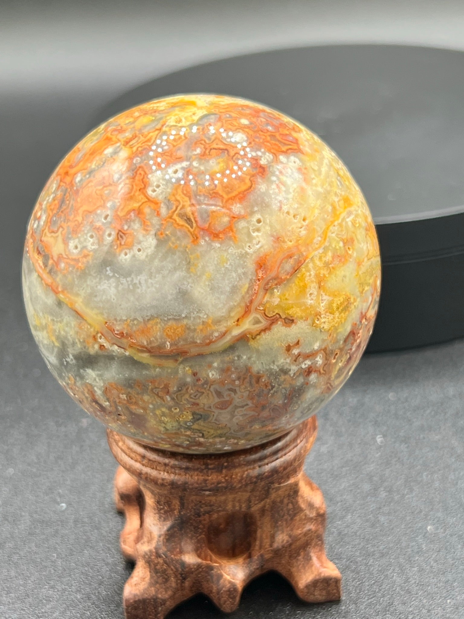 The amazing Bumblebee Jasper Sphere. This sphere stands at 6.3 cm tall without the stand.