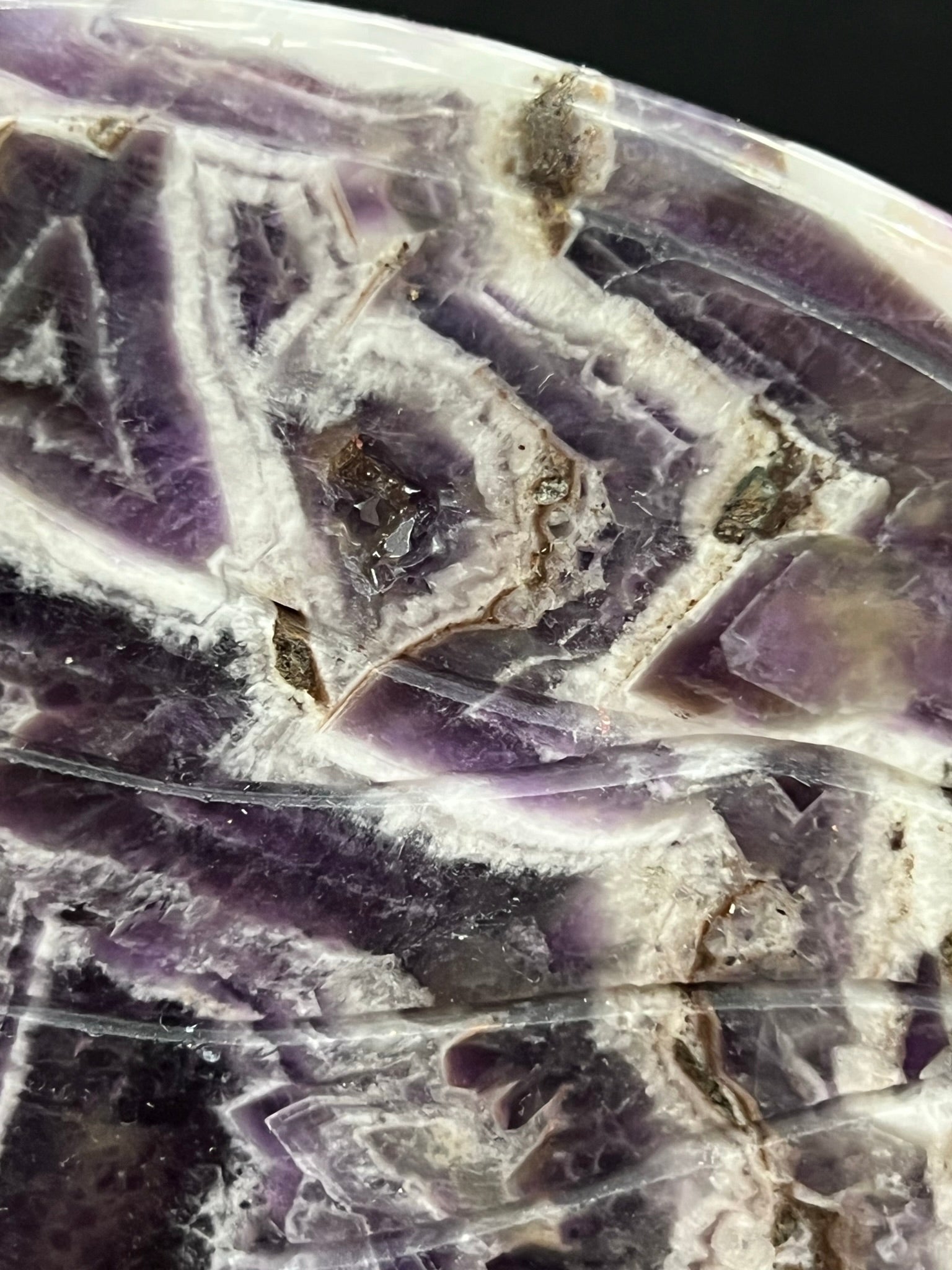 Dream Amethyst, also called Chevron Amethyst, is a combination of Amethyst and White Quartz. This crystal has a unique striped pattern that gives it a distinctive look. The purple color of this Amethyst is due to the presence of iron and manganese, while the white stripes are made of quartz.
