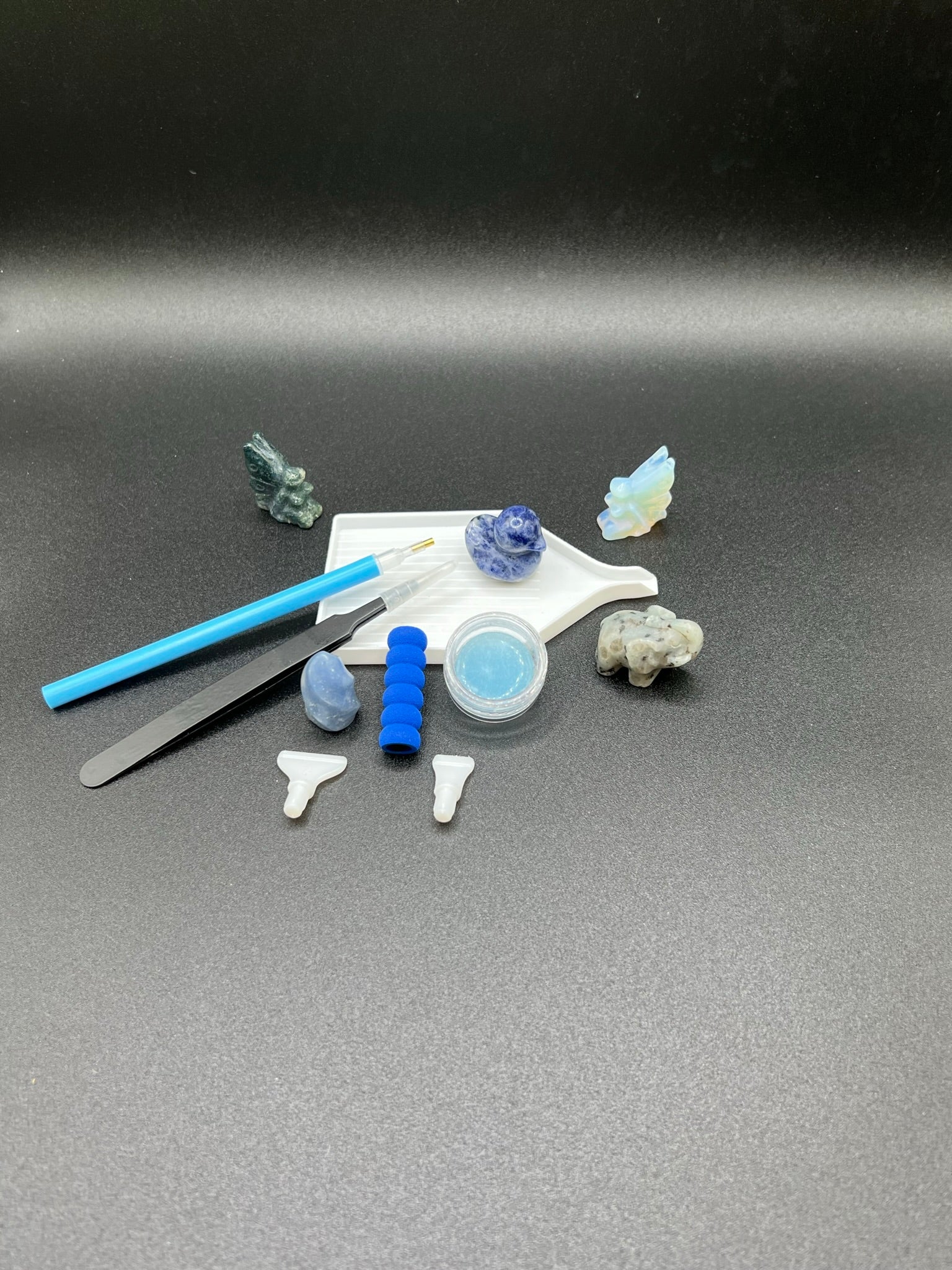 - Tool Kit - Includes: White boat with spout, tweezer, wax caddy with wax, drill pen with comfort grip, random washi tape, random coverminder, and two multiplacers.
