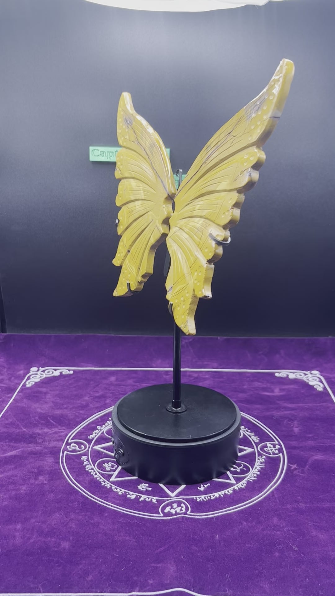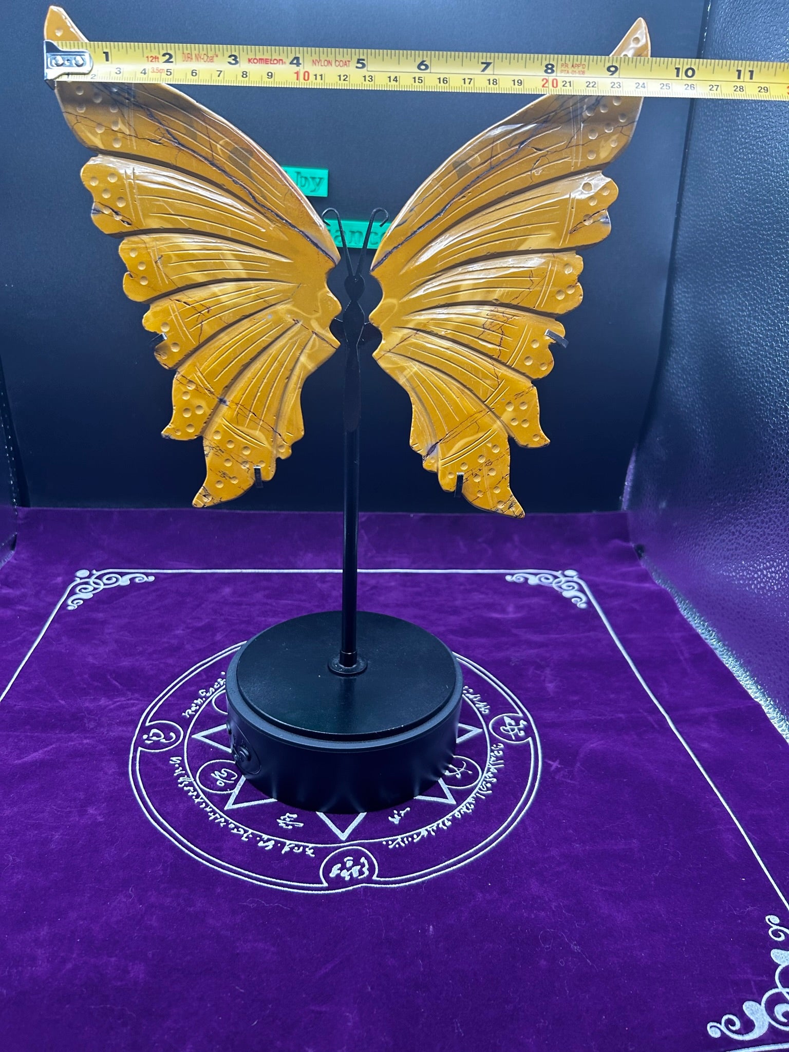 These beautiful butterfly wings measure from upper tip to upper tip 24cm. The individual wing measures from upper tip to lower tip 22cm. These wings are made of yellow mookaite, and are absolutely stunning.