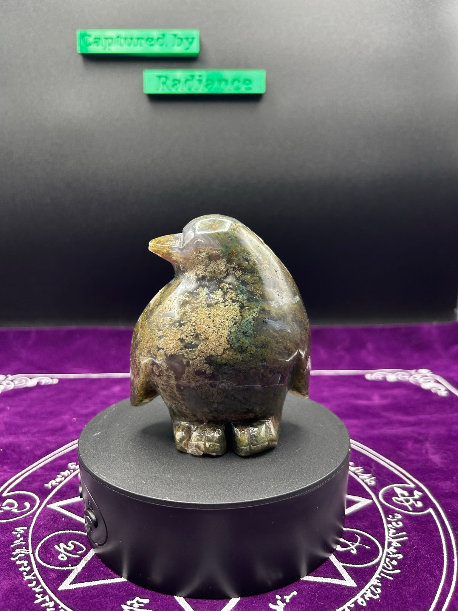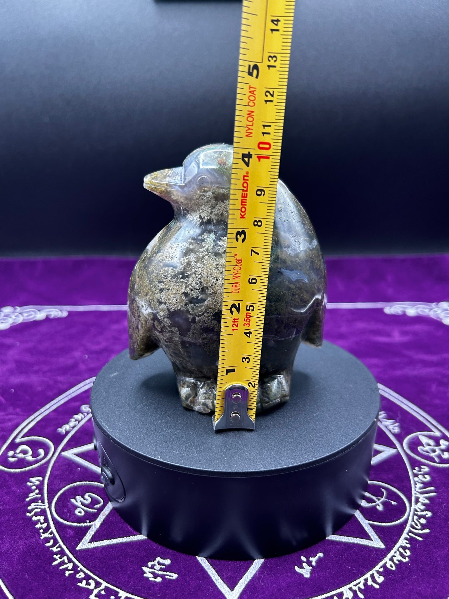 This cute little penguin is approximately 8cm in length and 10cm at the highest point. He weighs approximately .706kg.