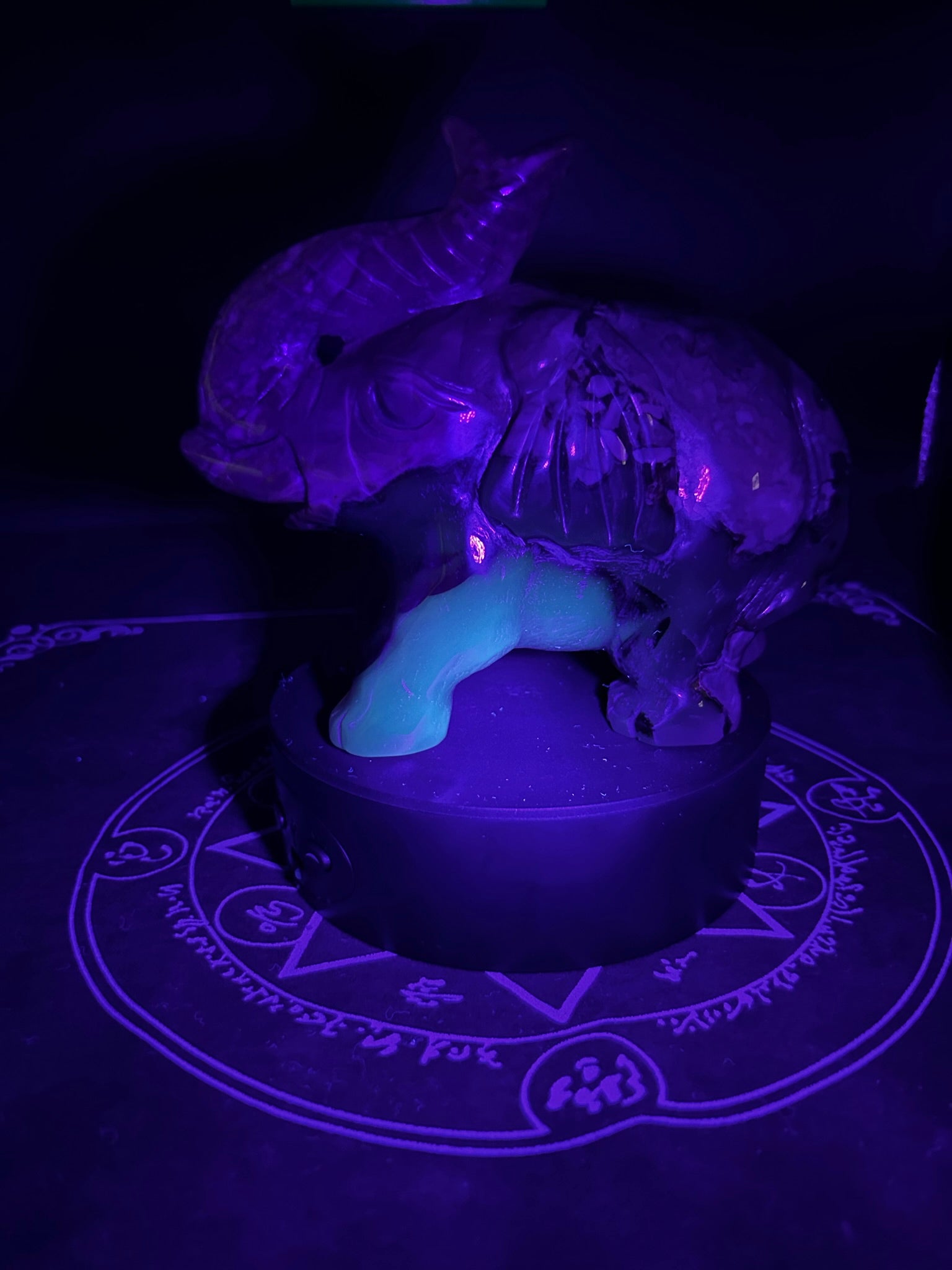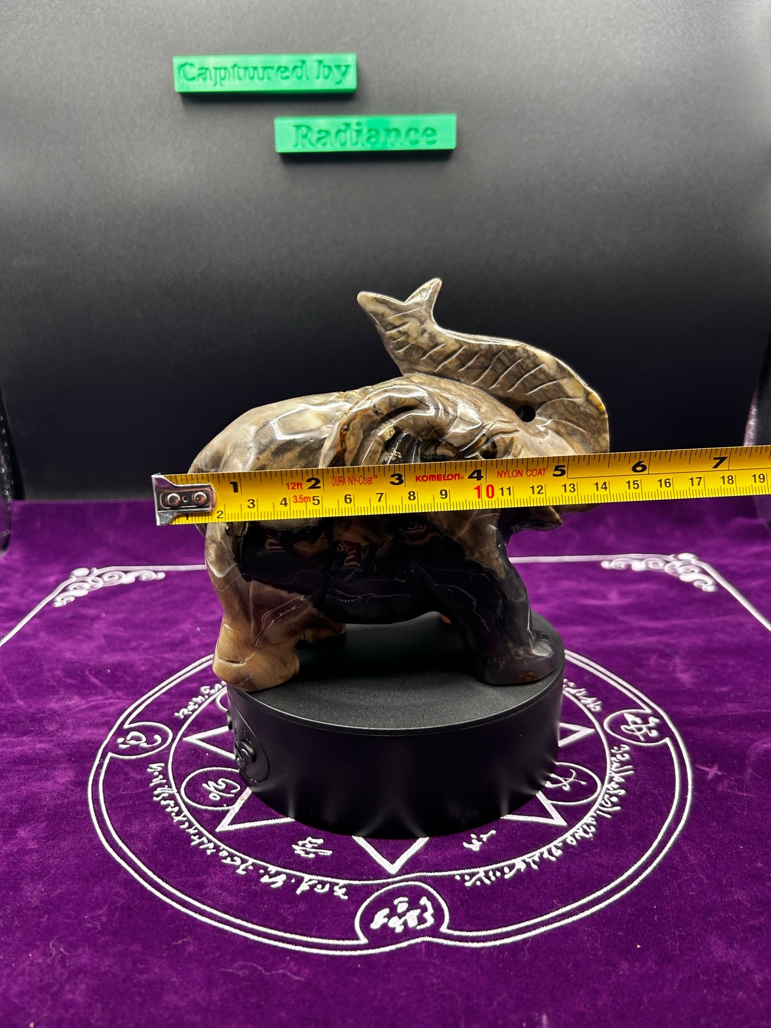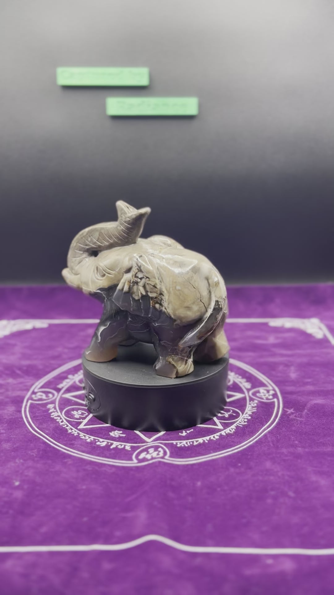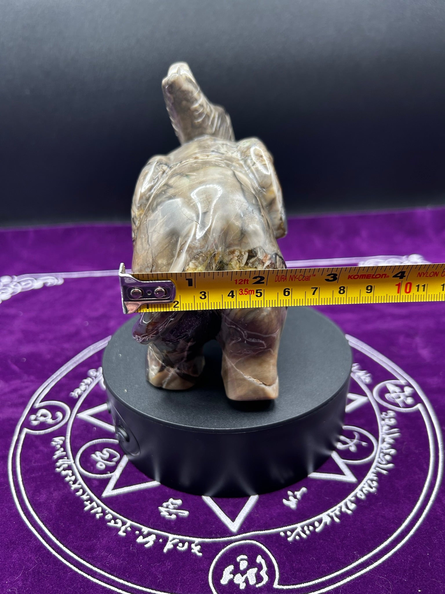 This cute little volcano agate elephant is approximately 15cm in length and 14 cm at the highest point. He weighs approximately 1.414kg.